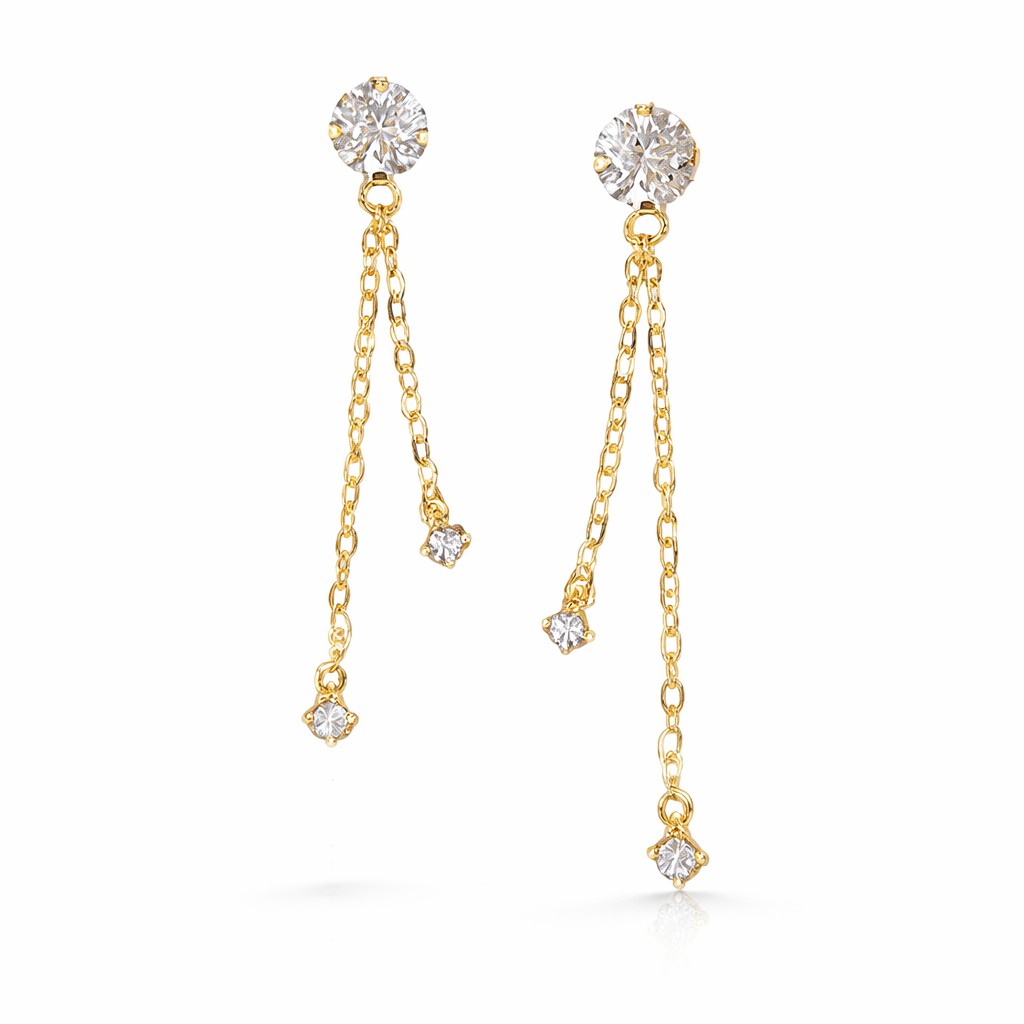 העגיל מעוצב משתי שרשראות המחוברות לעגיל צמוד זרקון.