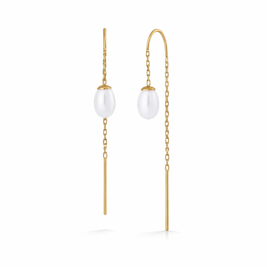 עגיל תלוי פנינה זהב 14 קארט – תלוי בהשחלה.
