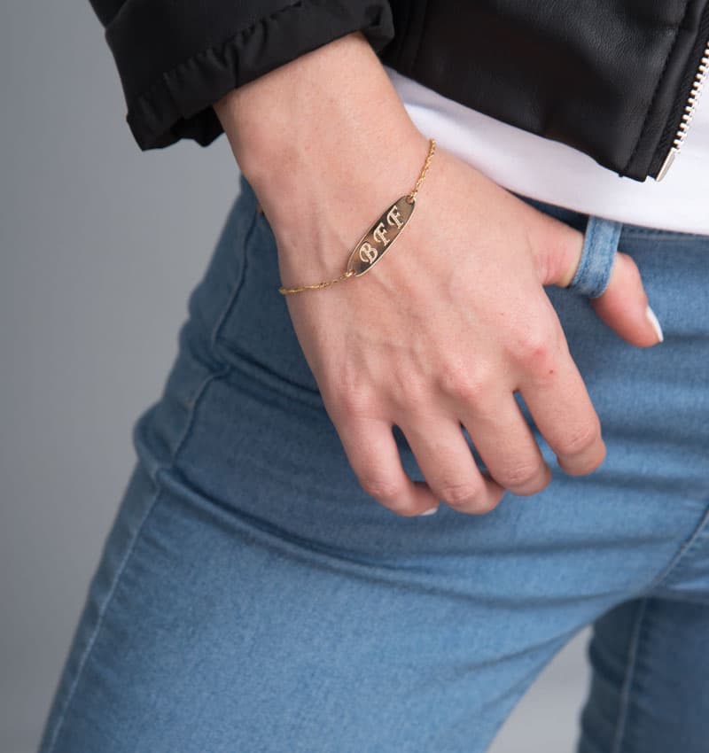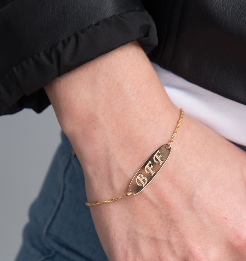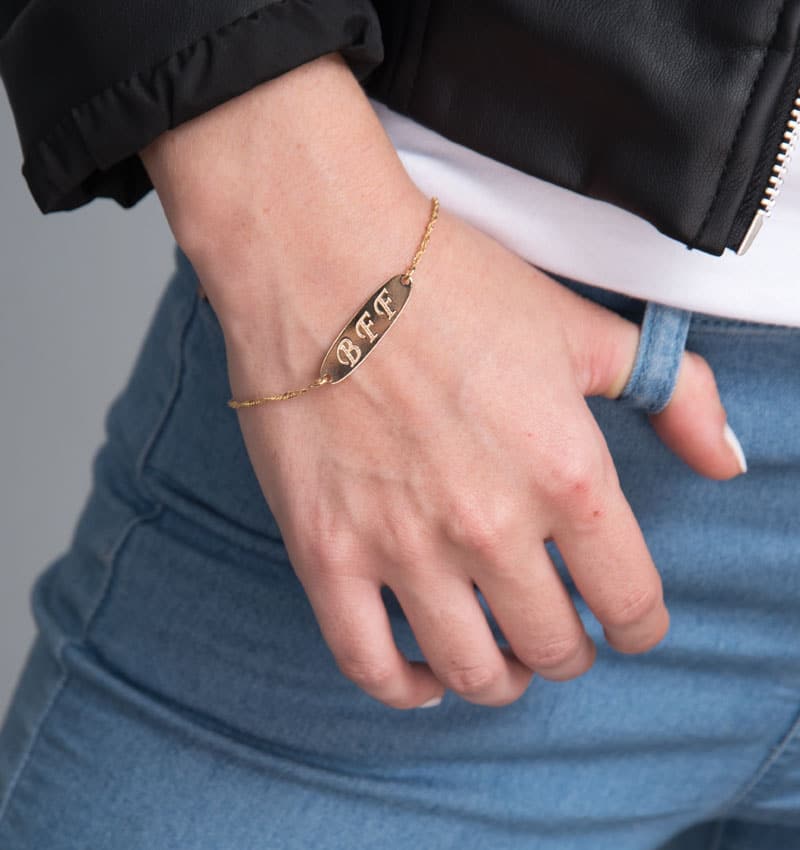 צמיד בחריטה אישית על פלטה אובלית עדינה